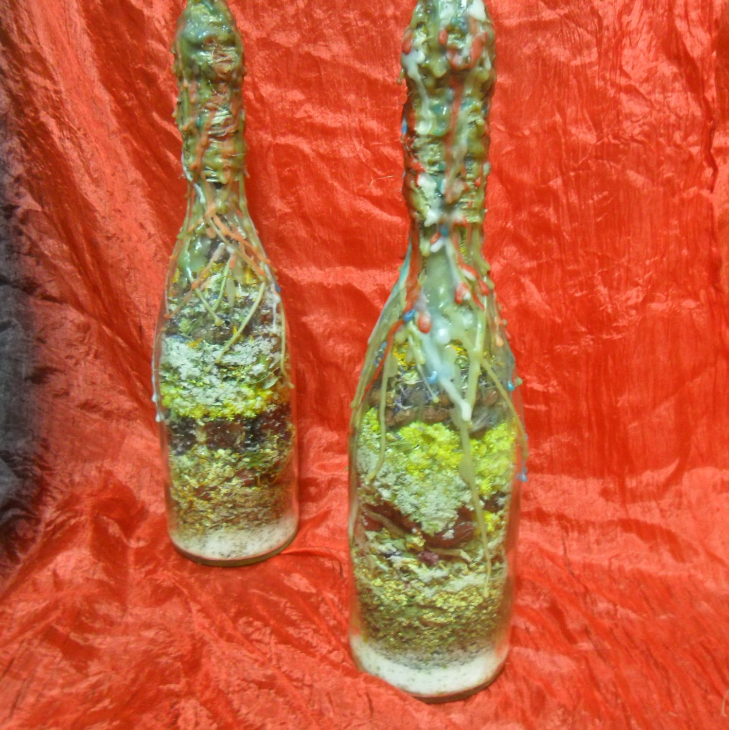 Бутылка на любовь или приворотная Создается из красного стекла и трав. Запечатывается красным воском