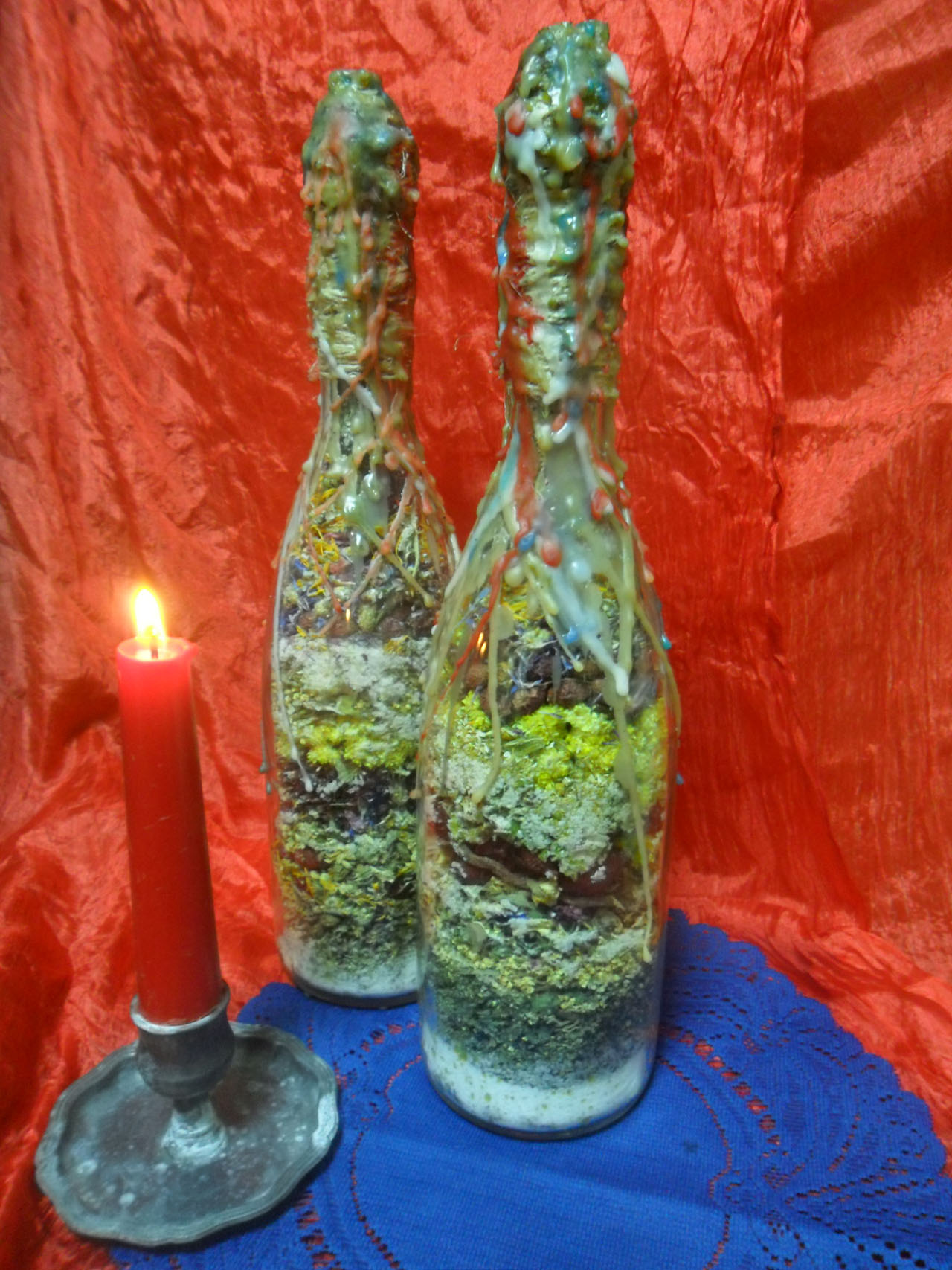Запечатывается ведьмина бутылка только тем воском, который использовался в ритуалах, причем цвет воска должен соответствовать цели.