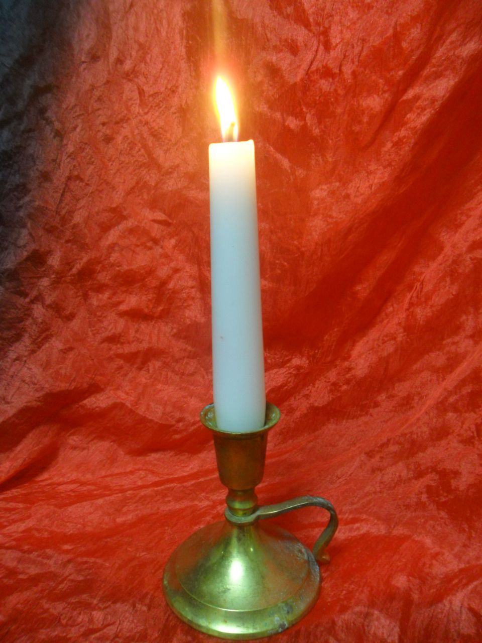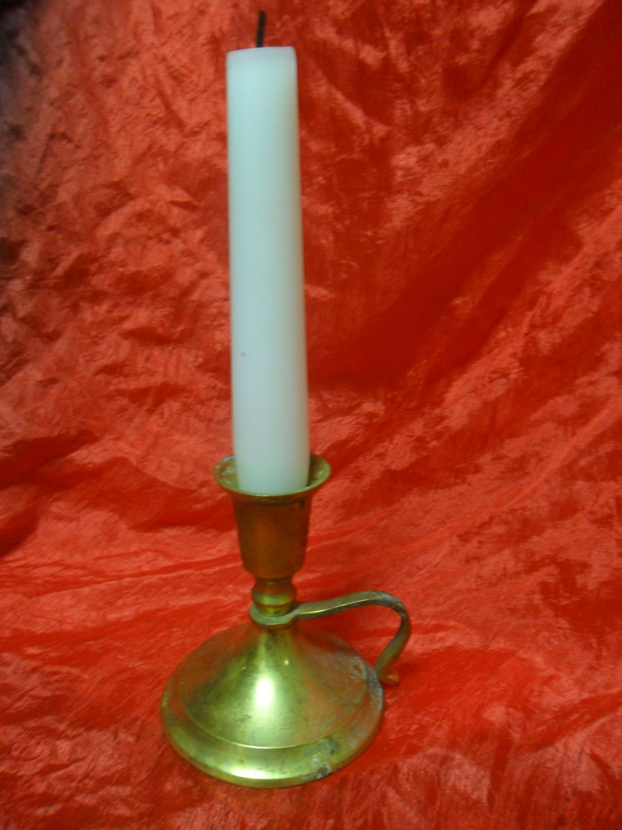 Старинный переносной бронзовый подсвечник, для одной толстой свечи.