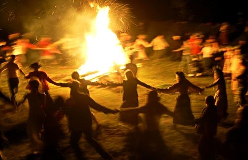 В ночь с 31 октября на 1 ноября друиды собирались в дубовых рощах на вершинах холмов, зажигали костры и приносили злым духам жертвы, чтобы умилостивить их. Считалось, что если утром разжечь очаг от угля тех костров, то он будет согревать дом в течение долгой зимы и защитит от нечистой силы.