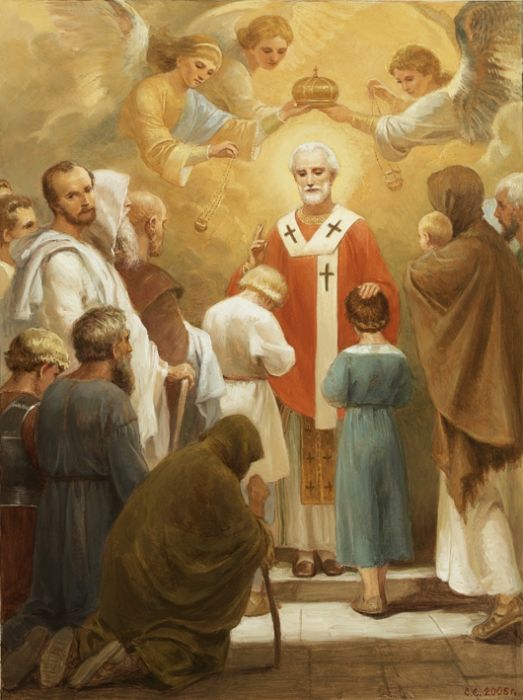 Еще при жизни люди считали отца Николая Святым. Один раз он горячей молитвой успокоил бурю на море и спас немало рыбаков и корабль, на котором паломники плыли в Палестину. Николай мог исцелять калек, больных, неоднократно спасал приговоренных к казни. Но самой большой его заслугой было то, что он безмерно любил всех людей, ценил каждого отдельного человека. Его жизнь – это любовь и служение людям.